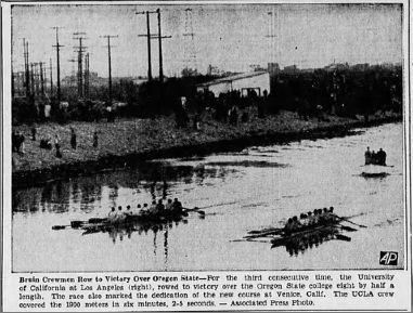 “Bruin Oarsmen en Route to Berkeley for Races”, Los Angeles Times, 18 Apr 1934, 33.