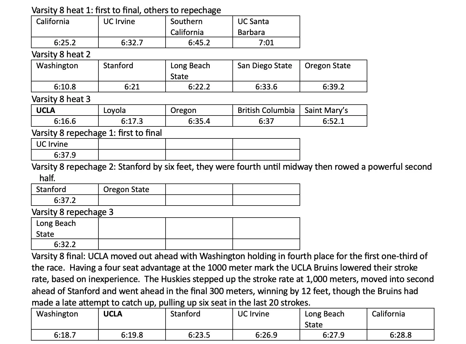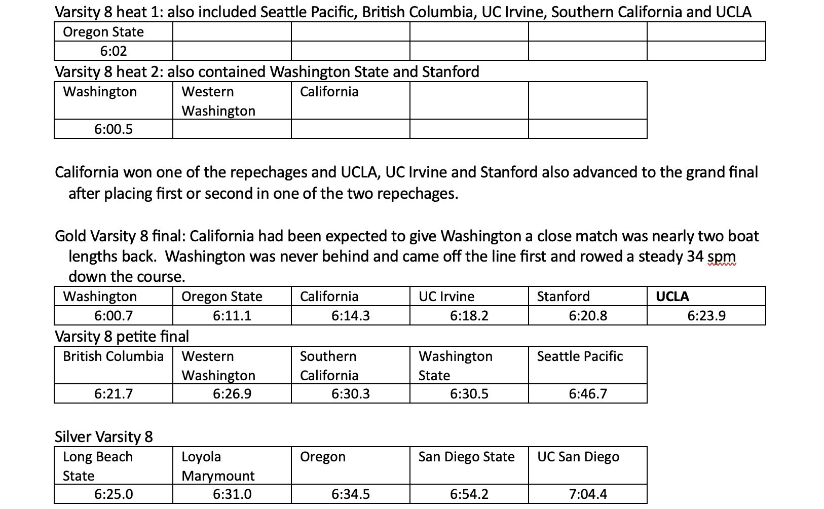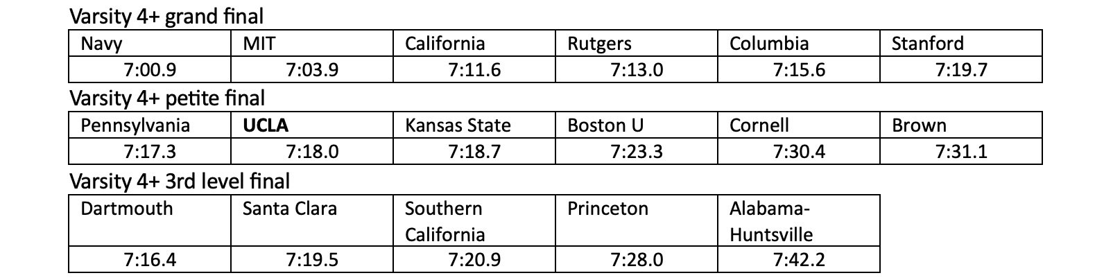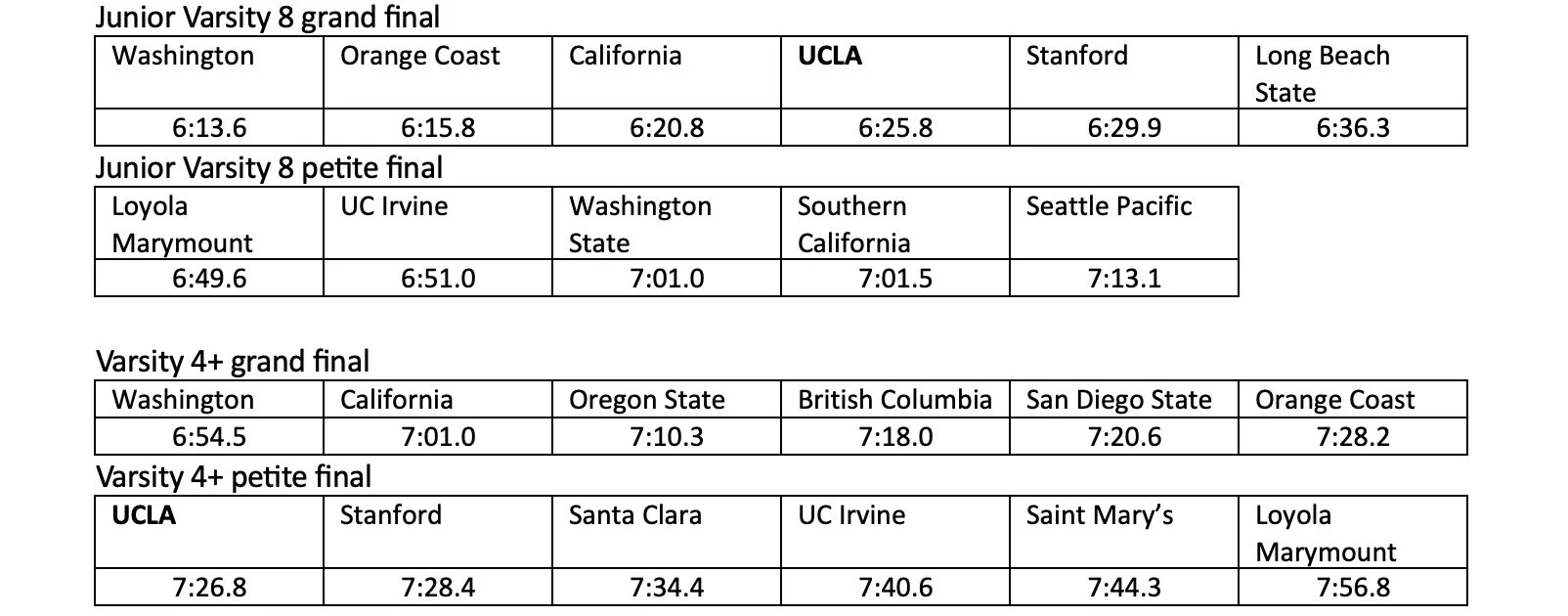 Varsity four [13]: UCLA 1st placing first for the second year in a row, Western Washington 4th