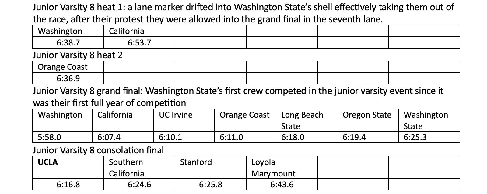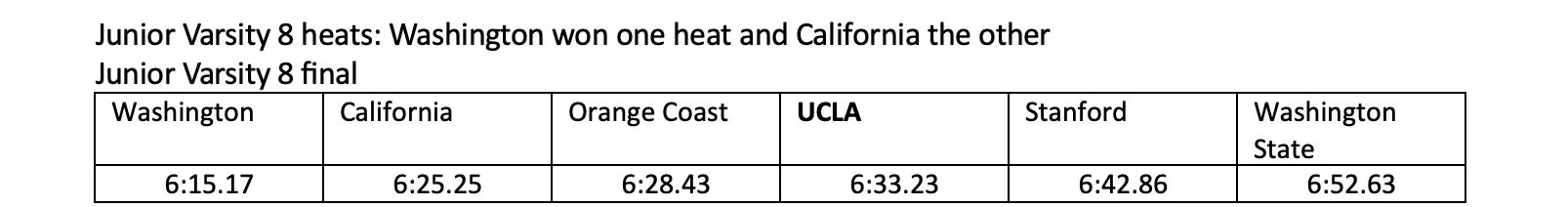 Junior Varsity eight: Washington second; Orange Coast seventh (first in petite).