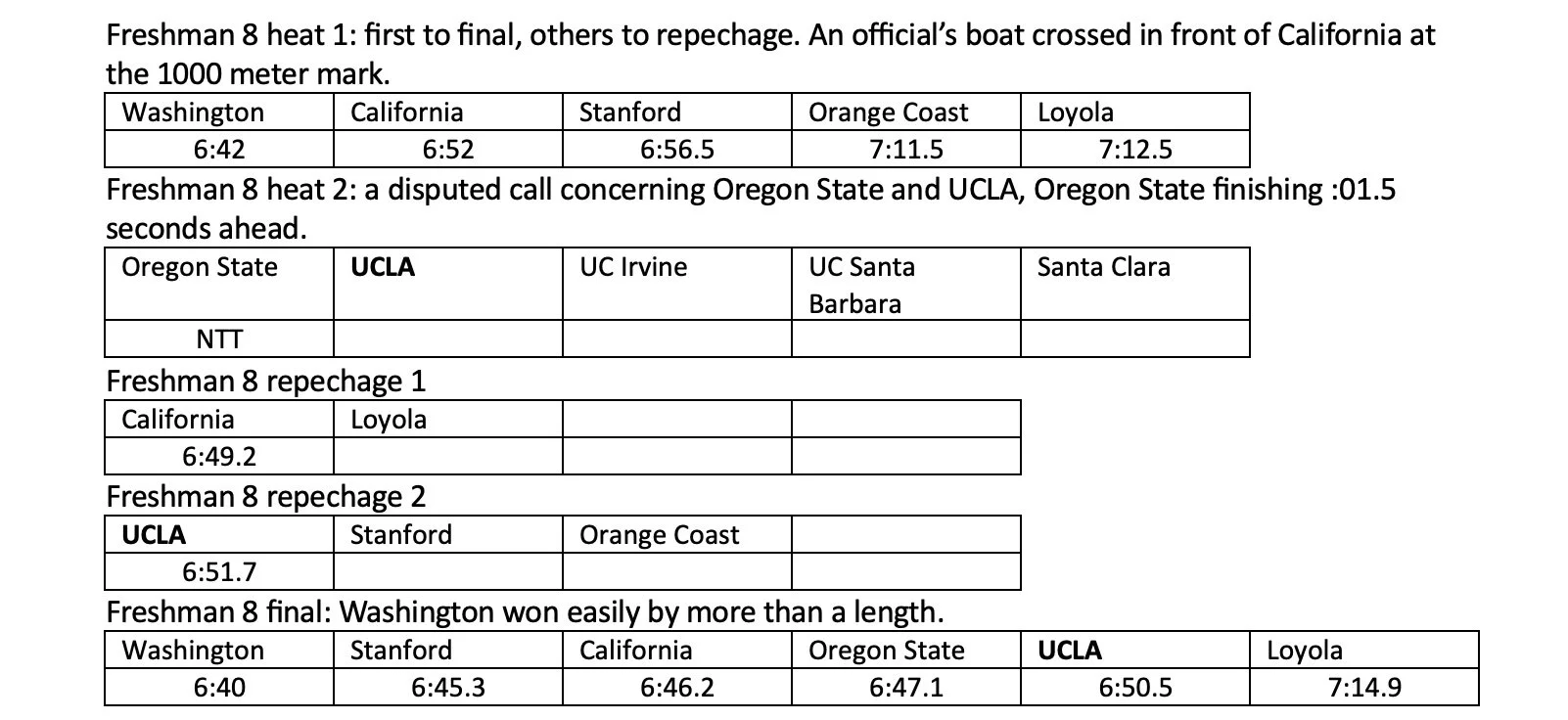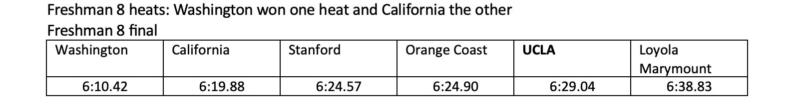 Freshman eight [16 entries]: California 4th, Washington 5th