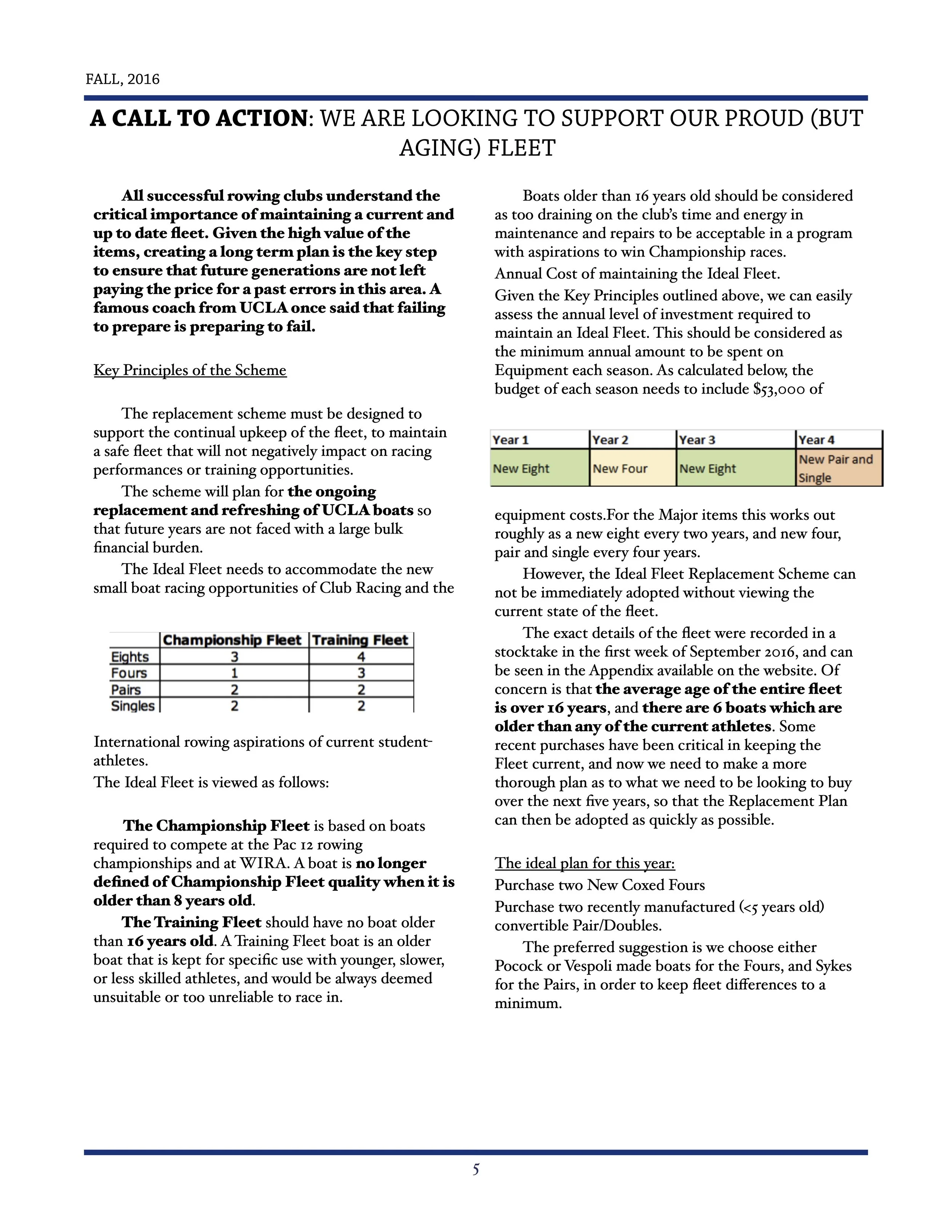Even with alumni fund raising support, each UCLA oarsman was still required to pay roughly $2,000 per year. The participation dues covered approximately half of the per-oarsman cost of equipment, travel, salaries, uniforms, etc. The balance of the annual operating budget being made up with contributions from donors. By January, FOUR reported that $109,904.33, representing 45.33% of the fund raising goal had been achieved.